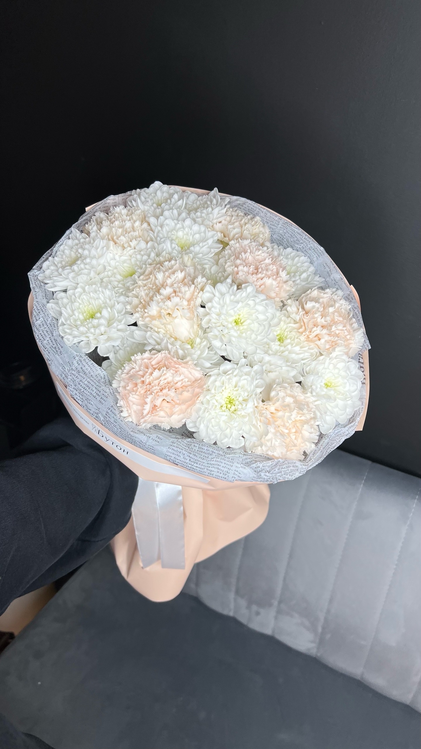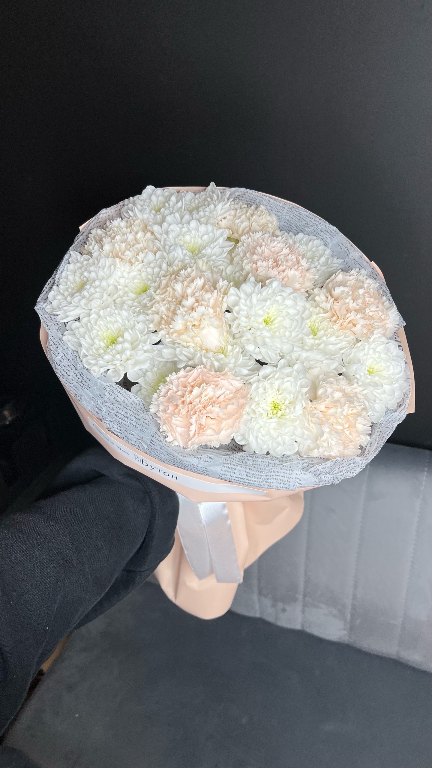 Дуо букет с хризантемой и диантусами
