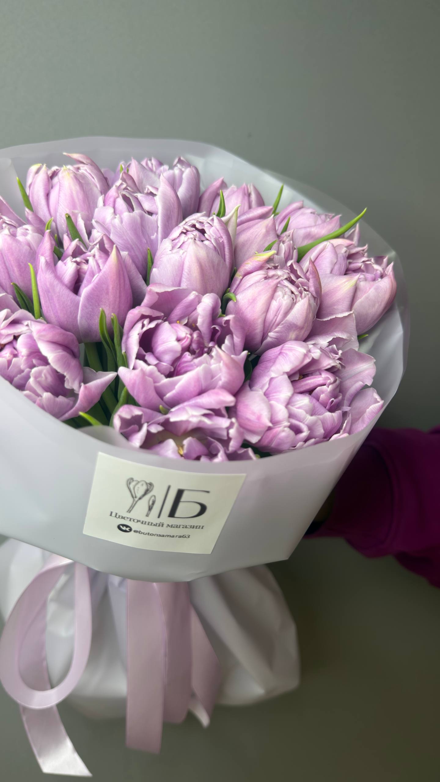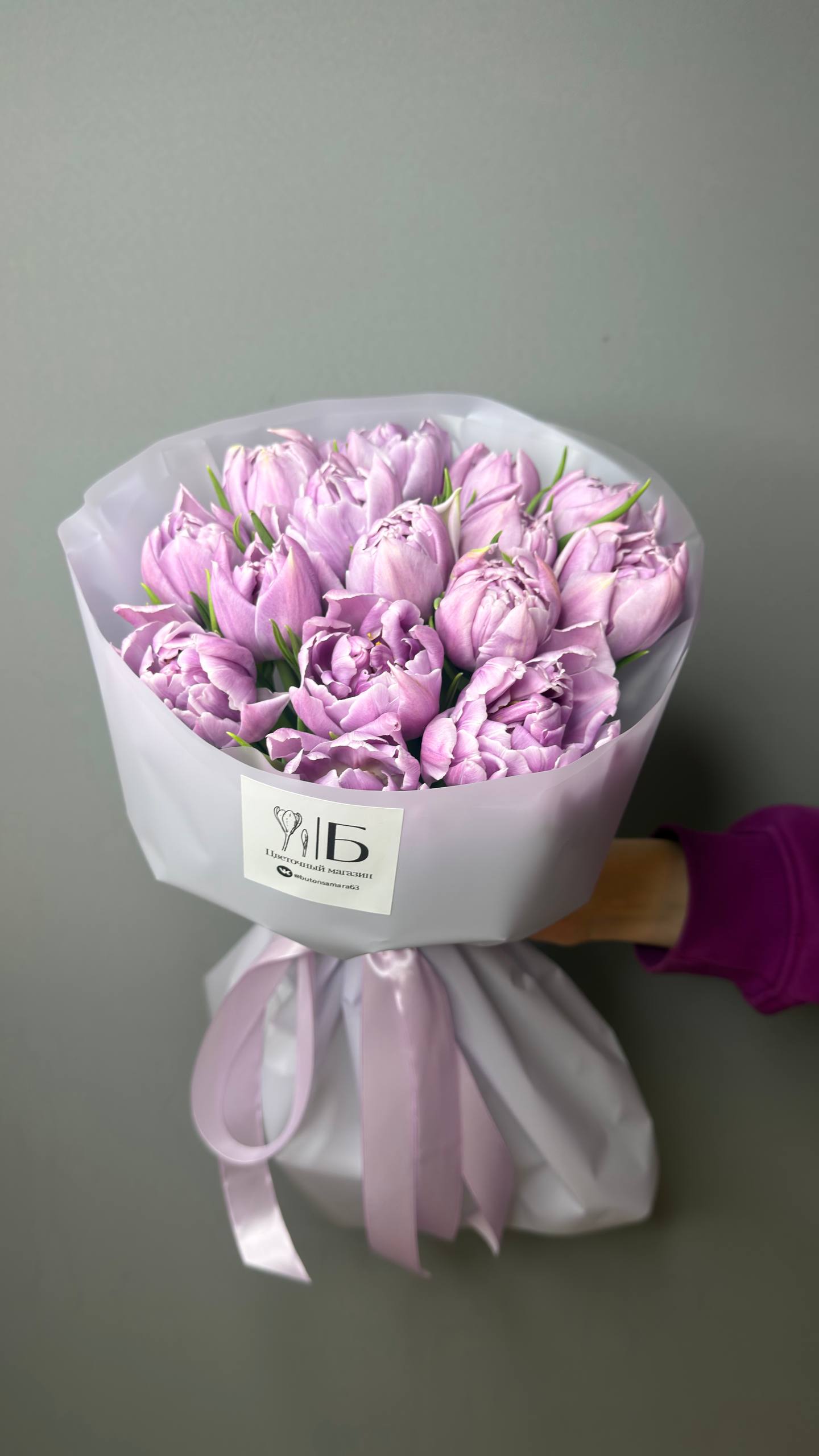 Монобукет из 15 сиреневых пионовидных тюльпанов