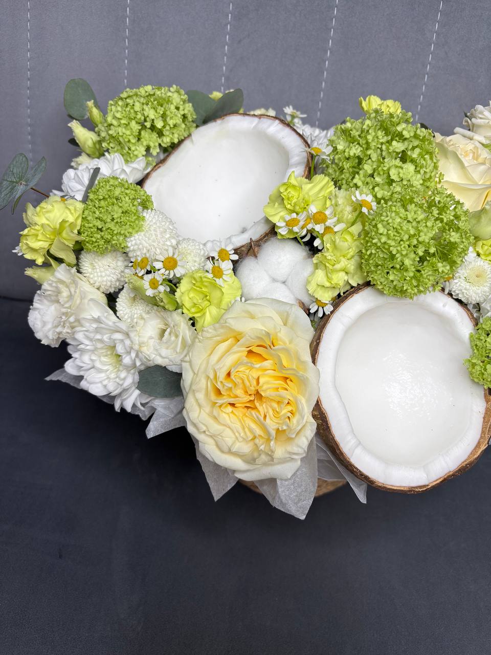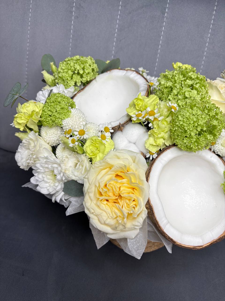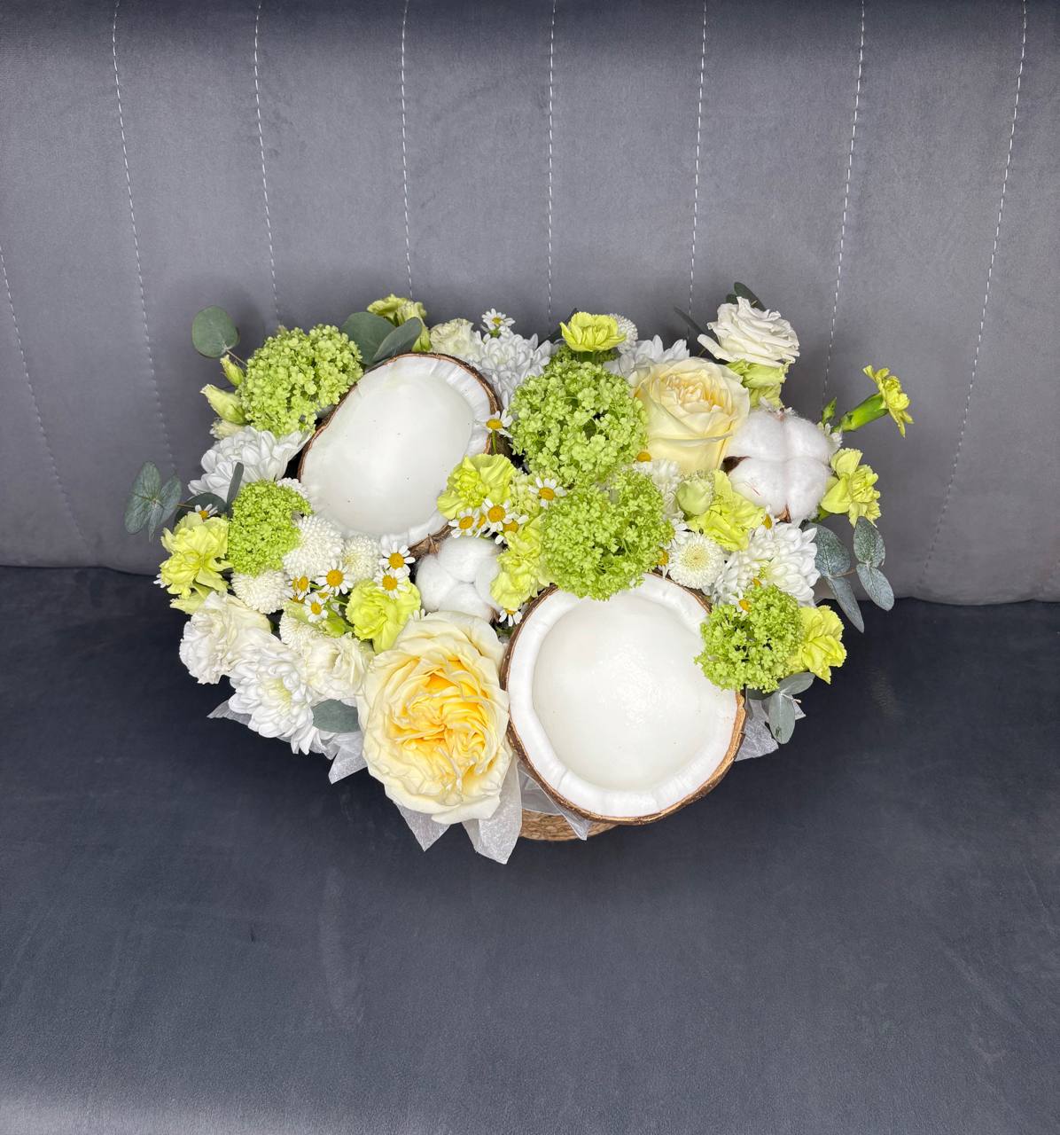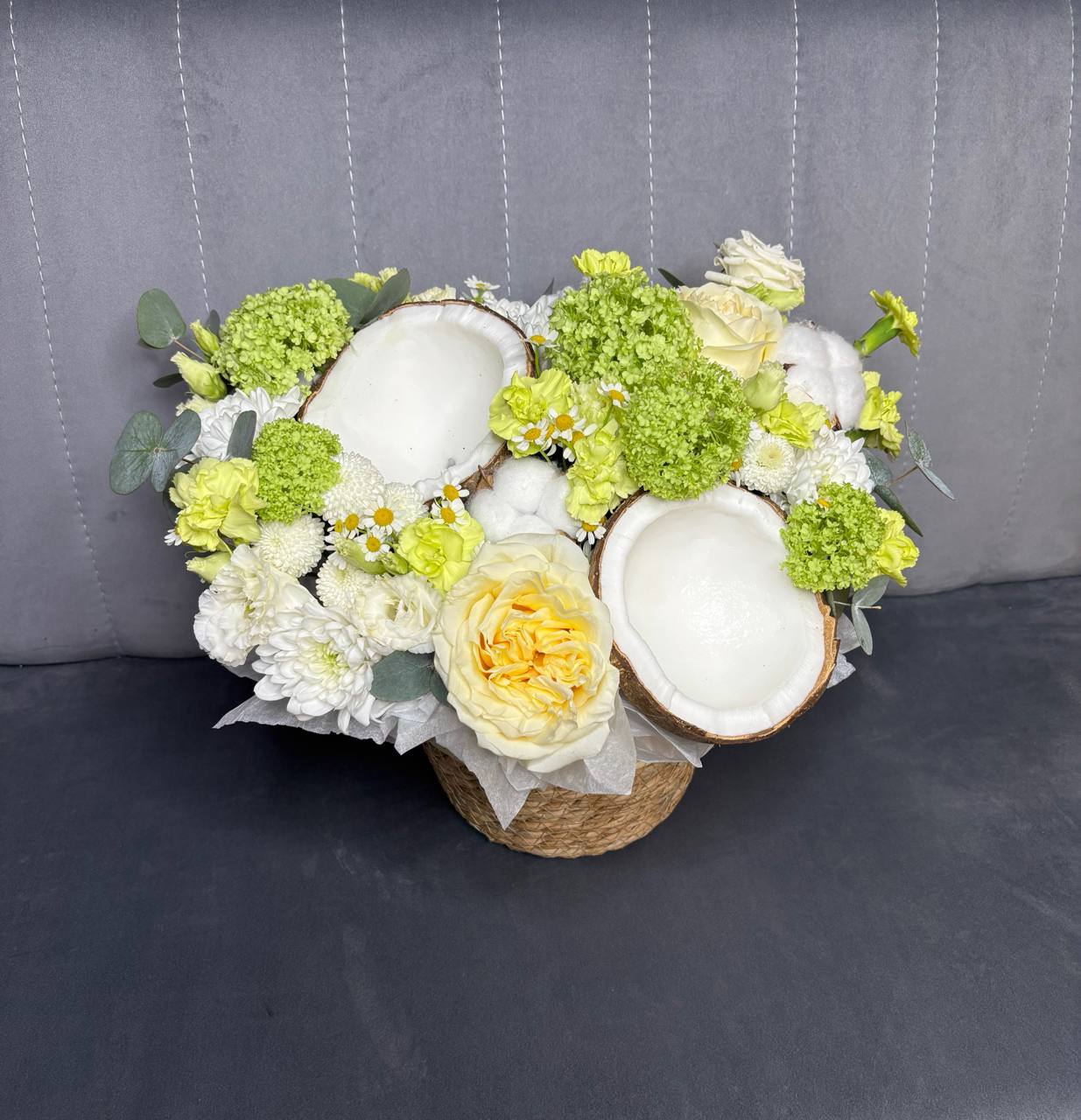 Авторская композиция в джутовом кашпо с кокосом