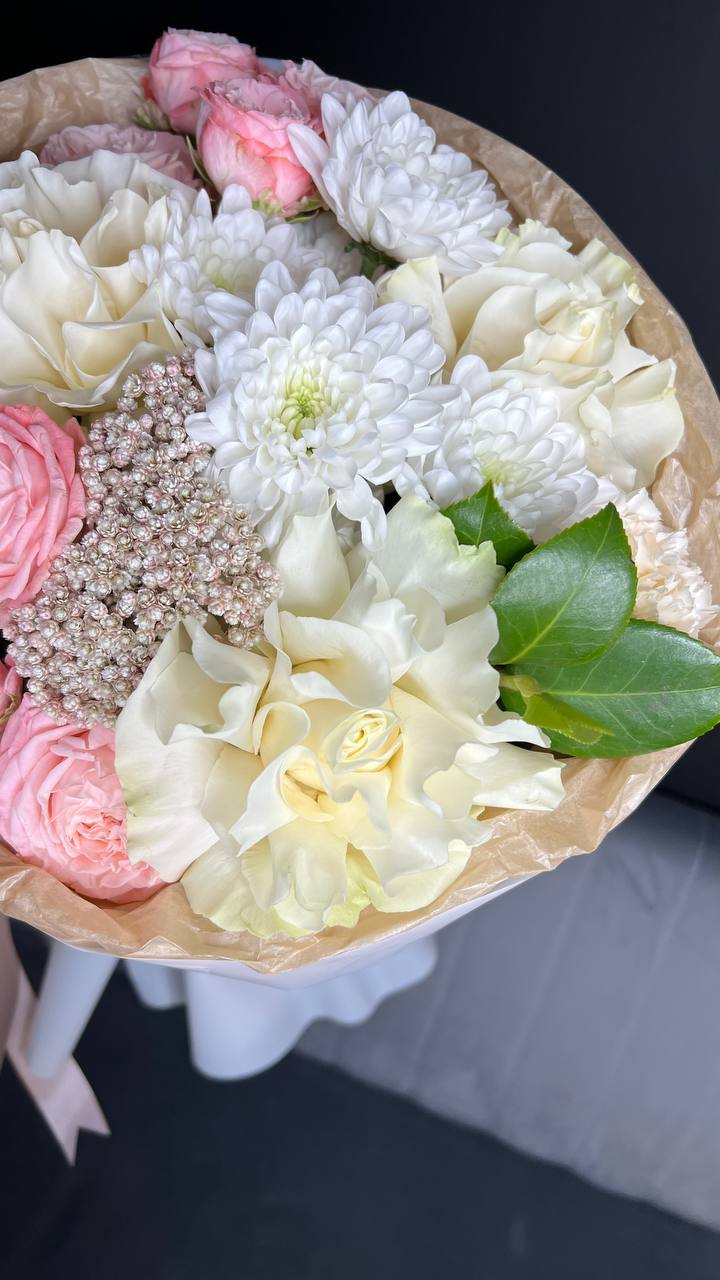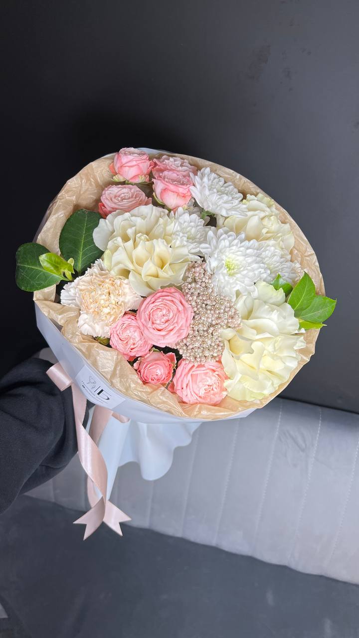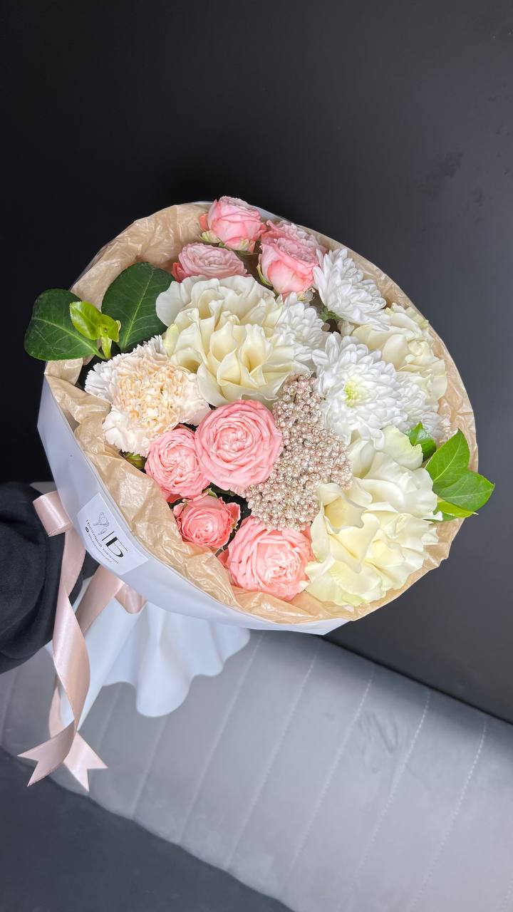 Авторский букет с французскими розами и диантусами